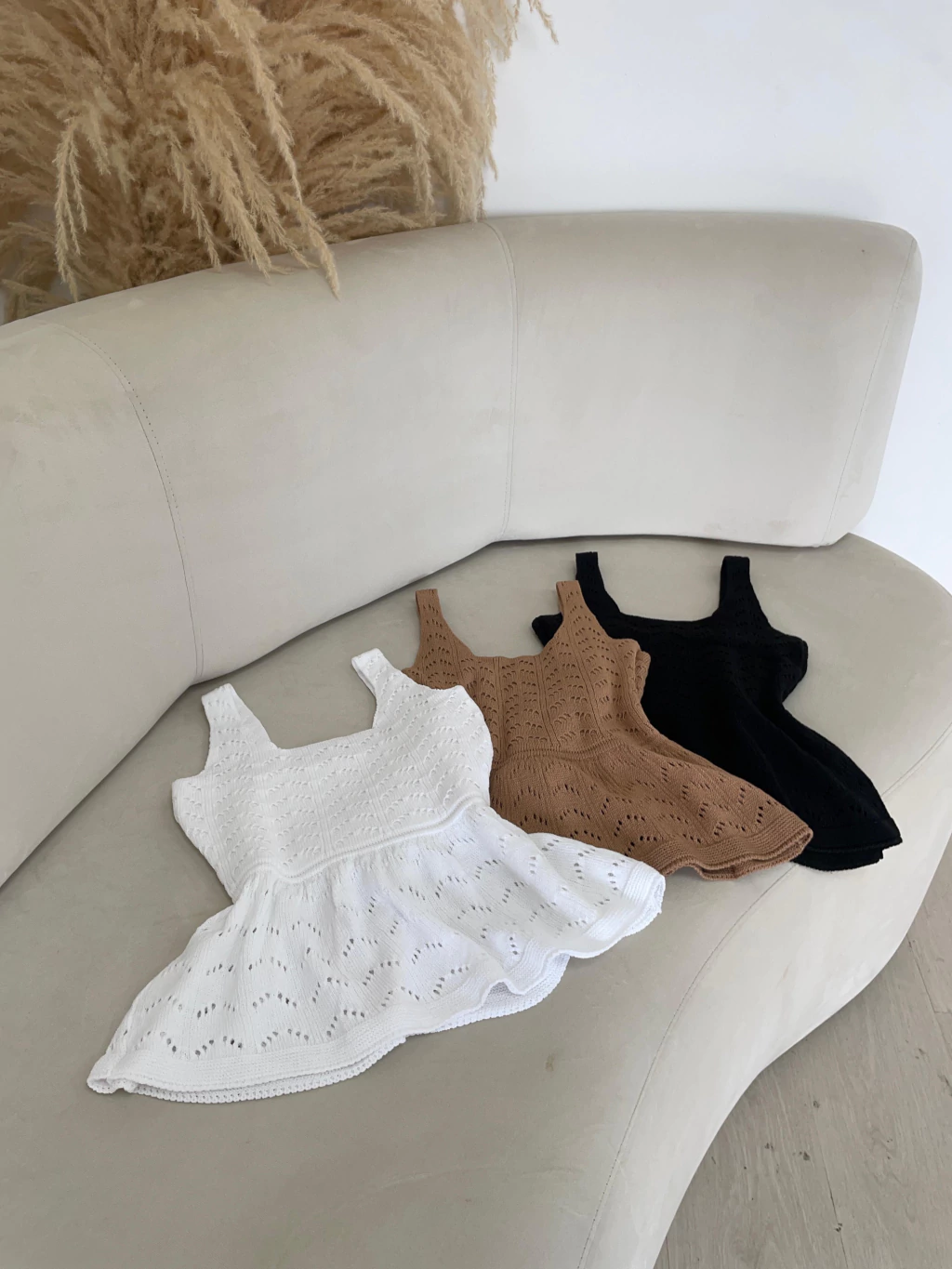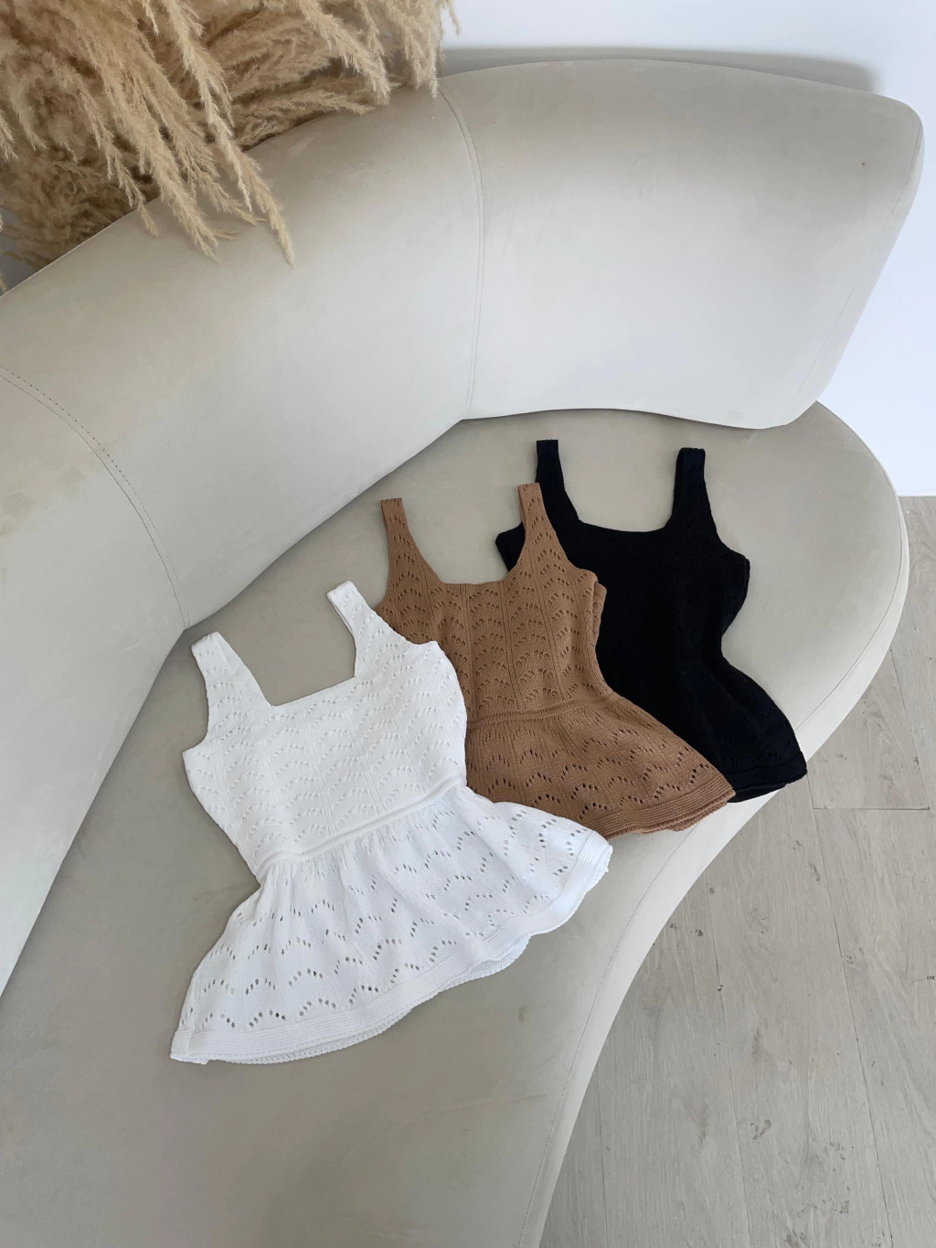Com modelagem peplum que valoriza a silhueta e detalhes vazados no tricot, ela traz um toque romântico e sofisticado ao look.