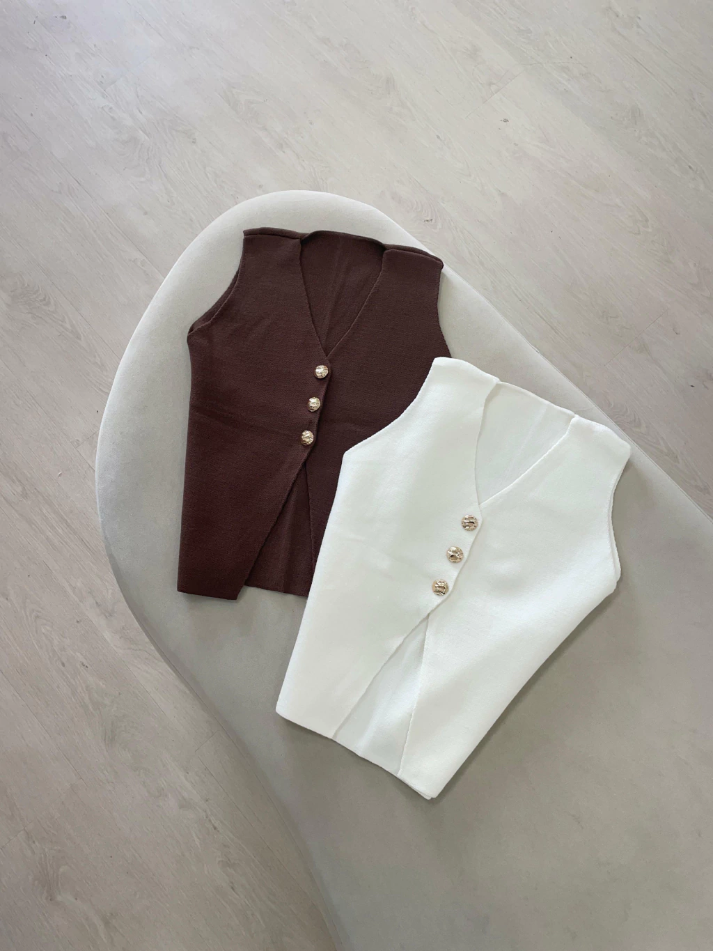 Disponível em tons neutros e sofisticados como off-white, marrom, bordô, azul marinho e preto, esse colete é ideal para sobreposições com camisas, blusas de manga longa ou vestidos. Um curinga indispensável para compor looks de outono e inverno com muito estilo.