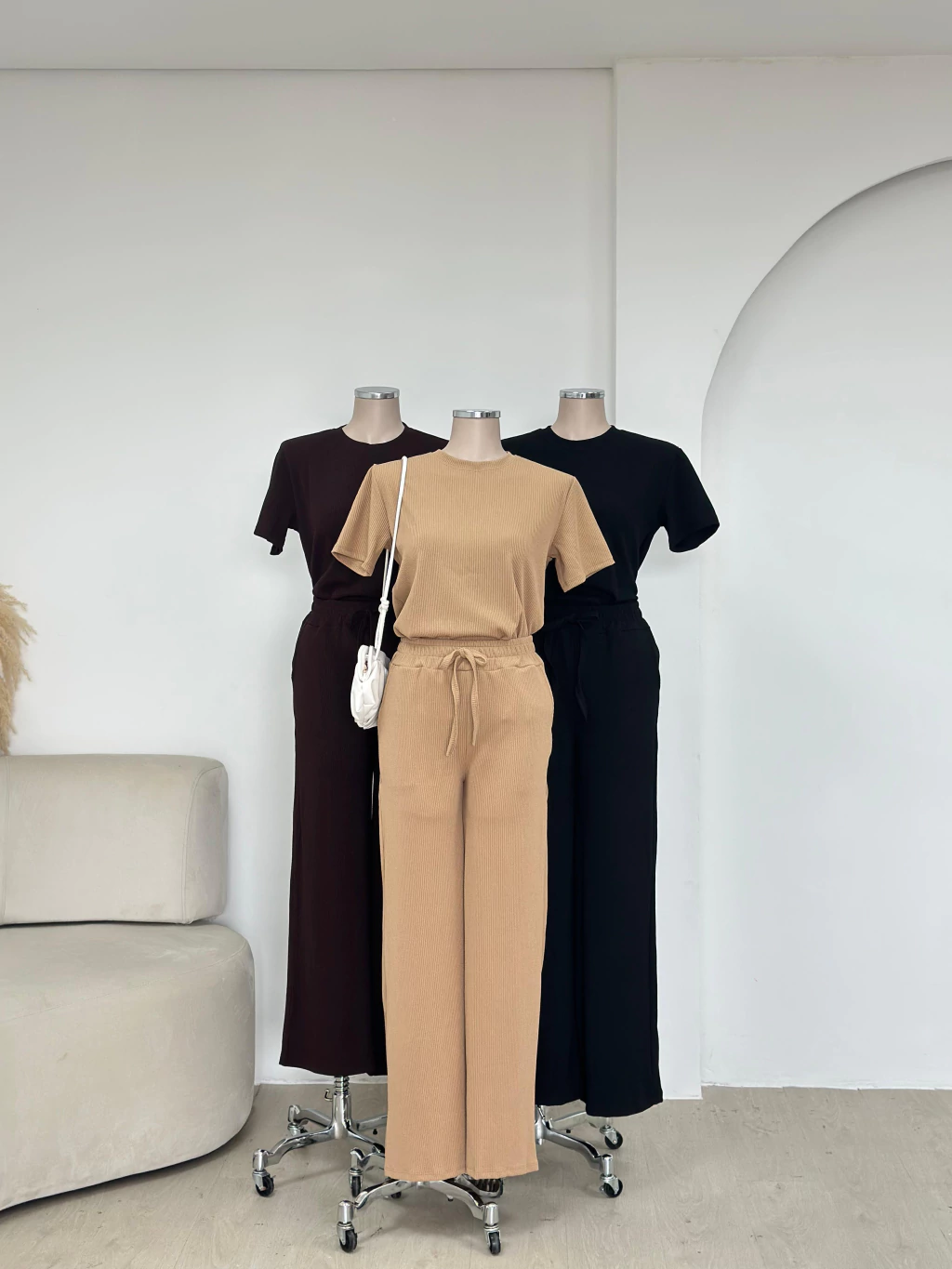 O Conjunto Gisele é sinônimo de conforto com sofisticação. Confeccionado em tecido canelado de toque leve e macio, ele une praticidade e estilo em uma única peça. A blusa com modelagem básica e a calça de caimento amplo e cós ajustável garantem liberdade de movimento e um visual elegante sem esforço.