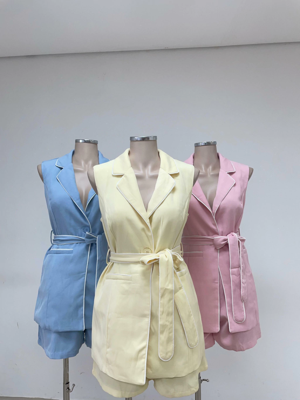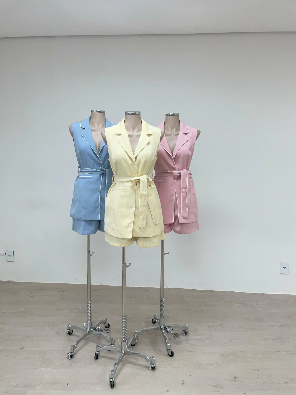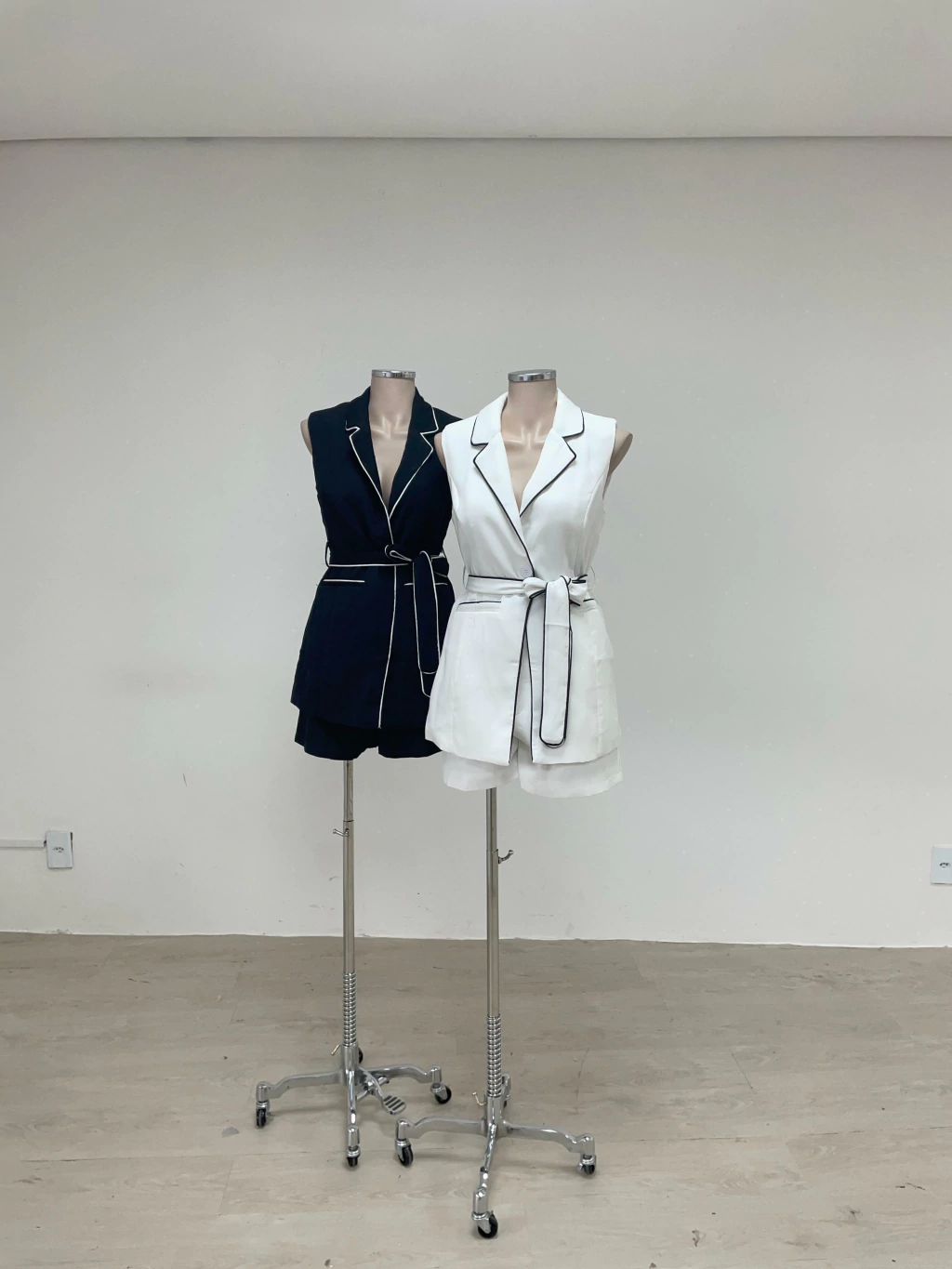 O Conjunto Manuela é puro charme e sofisticação! Composto por um blazer regata alongado com lapela estruturada, acabamento com viés contrastante e faixa para amarração na cintura, ele traz um toque moderno à clássica alfaiataria. O short que acompanha possui modelagem confortável e elegante, ideal para composições estilosas nos dias mais quentes.