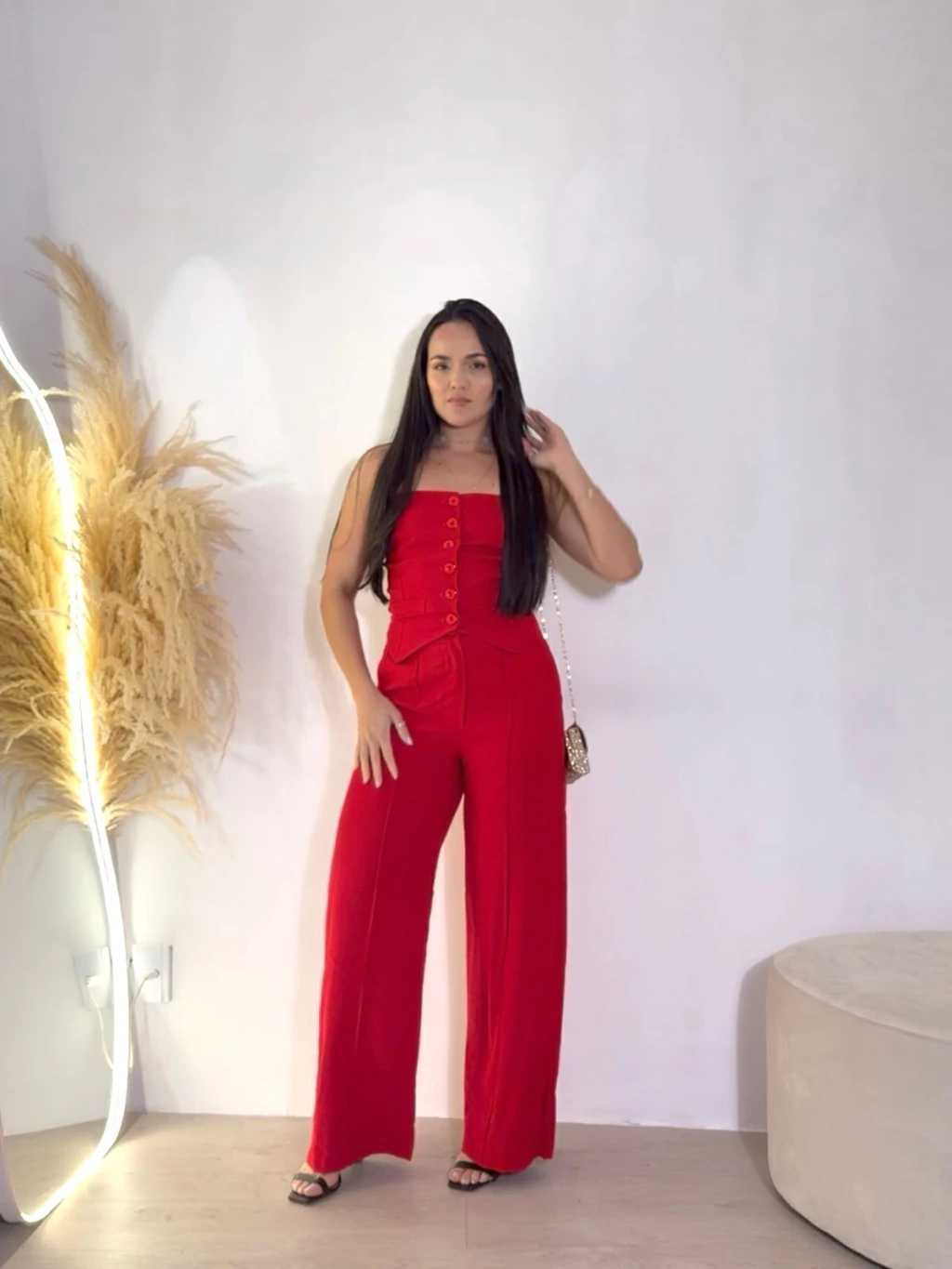 O Conjunto Romana é a combinação perfeita entre modernidade e elegância. Ele traz um colete estruturado estilo tomara-que-caia, com fechamento frontal por botões e recortes que valorizam a silhueta. A calça de alfaiataria apresenta caimento reto, bolsos laterais e modelagem sofisticada, ideal para compor looks estilosos e refinados. O tom marrom profundo deixa o conjunto ainda mais elegante, perfeito para eventos, festas, jantares e ocasiões especiais.