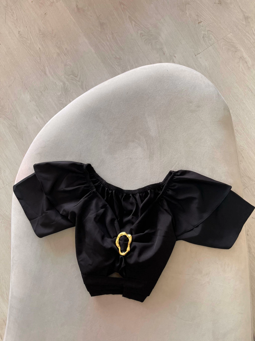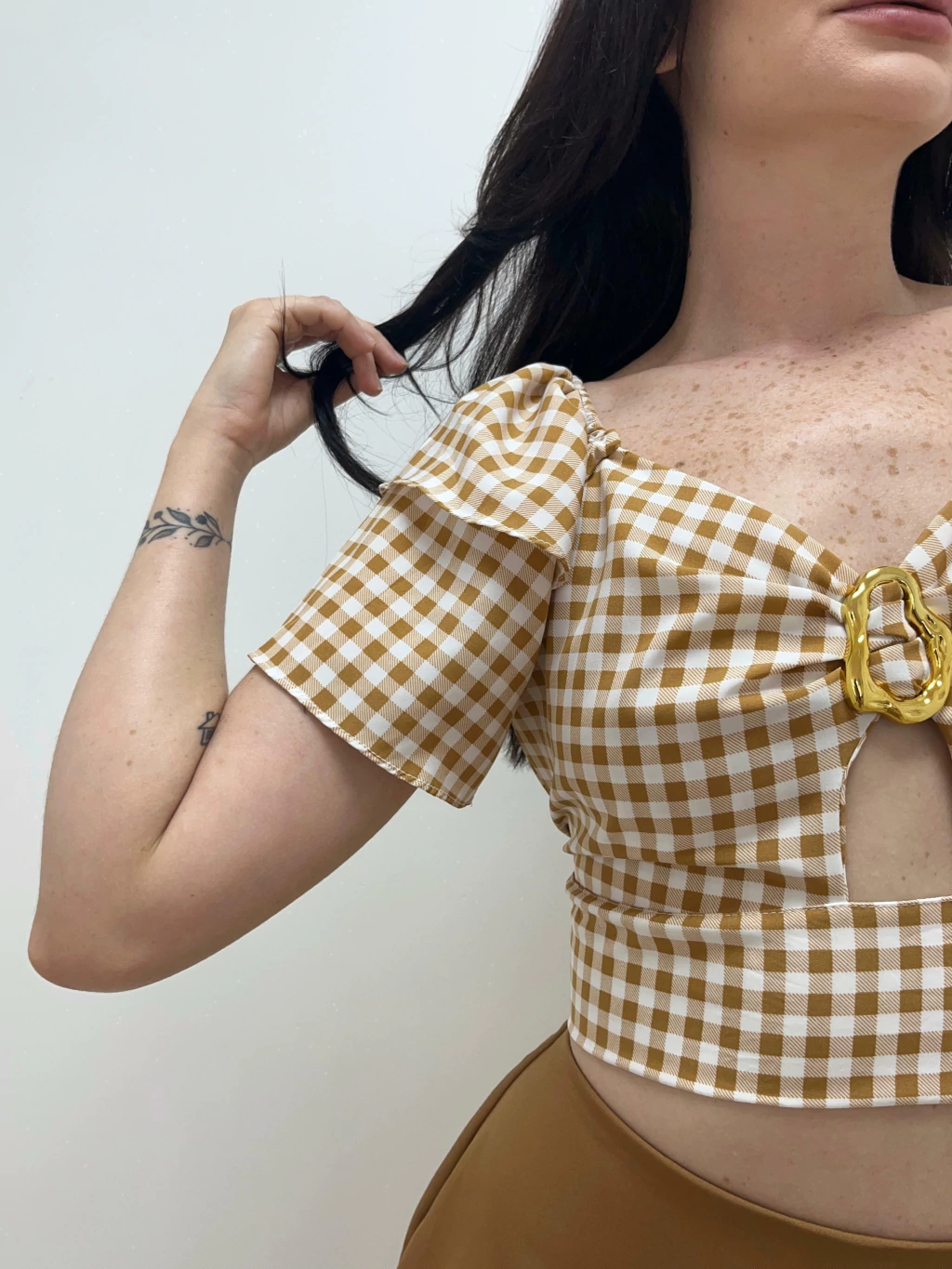 O Cropped Dani é um modelo elegante e atemporal. Com mangas amplas, decote ombro a ombro e um detalhe orgânico dourado, ele traz sofisticação ao visual. Ideal para compor produções noturnas ou elevar o look do dia a dia com um toque fashionista. Confeccionado em tecido leve com caimento fluido e elástico na parte superior para maior conforto.