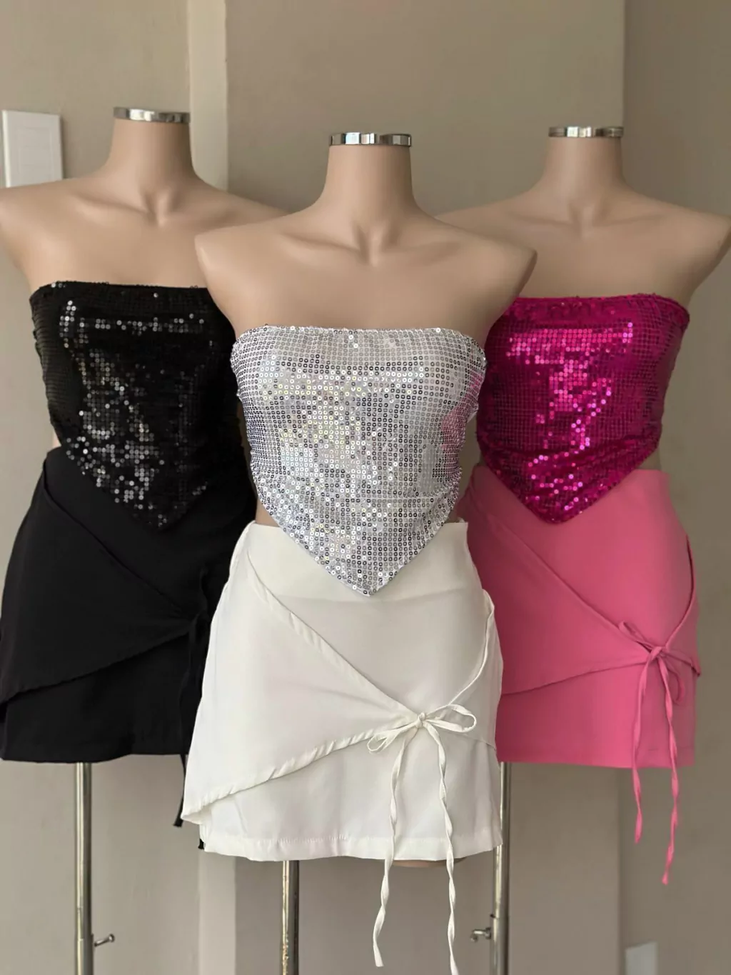 O cropped de paetê é a escolha perfeita para quem quer brilhar! Com modelagem tomara que caia e corte em bico, ele combina ousadia e sofisticação em um visual marcante. Esse modelo se ajusta ao corpo com conforto e valoriza o colo com muito glamour. Ideal para festas, baladas e eventos noturnos, o cropped de paetê é versátil e pode ser combinado com saias, calças de alfaiataria ou jeans de cintura alta. Um must-have no closet de quem ama um visual poderoso e fashionista.