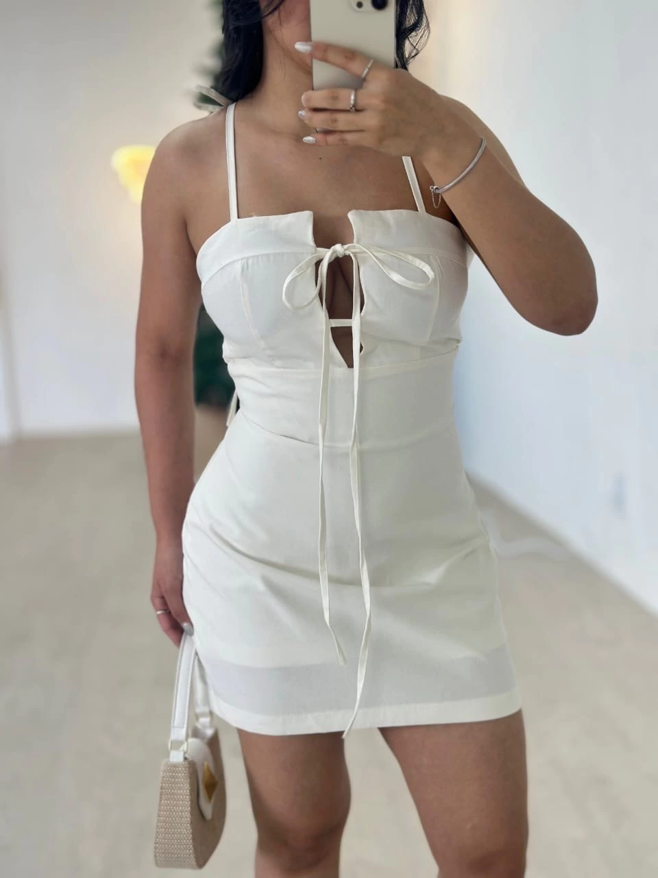 Em um tom rosa vibrante que ilumina o visual, o modelo é curto, justo e desenhado para valorizar a silhueta com muito estilo. As alcinhas com amarração permitem ajuste perfeito, enquanto o decote frontal com laço traz um toque romântico e super delicado.