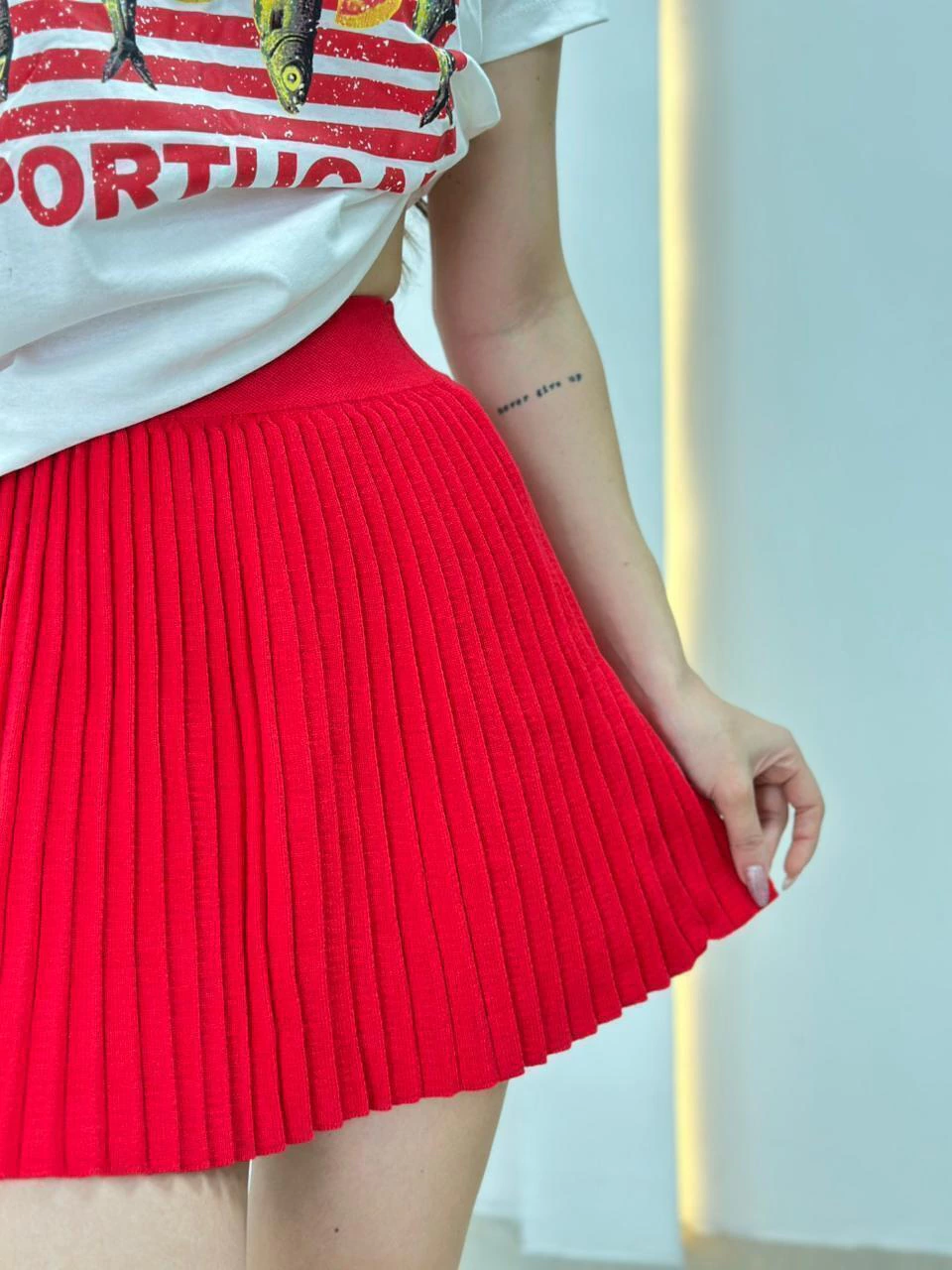 A Saia Serena é sinônimo de elegância e movimento! Com modelagem plissada e cós elástico, oferece conforto e um caimento impecável. Seu tecido leve e estruturado cria um visual sofisticado, ideal para combinações com camisas, croppeds ou suéteres. É uma peça versátil que vai do casual ao chic com facilidade.