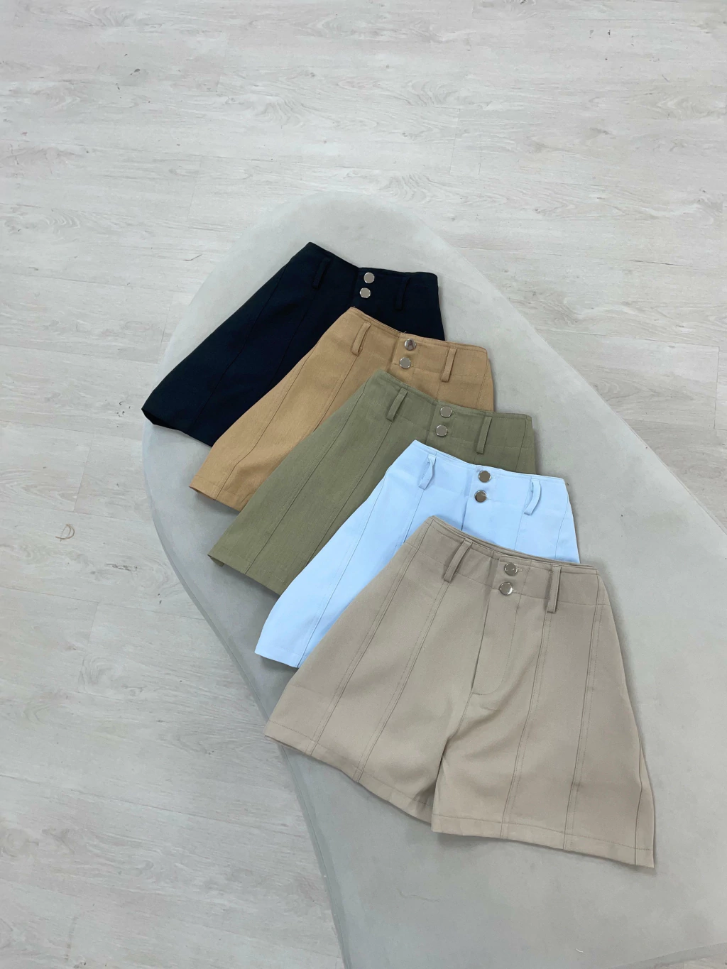 O Short Maria é uma peça de alfaiataria moderna e versátil, ideal para compor looks elegantes com conforto. Possui modelagem reta com cintura alta, recortes estruturados que alongam a silhueta e fechamento frontal com dois botões metálicos que trazem um toque sofisticado.