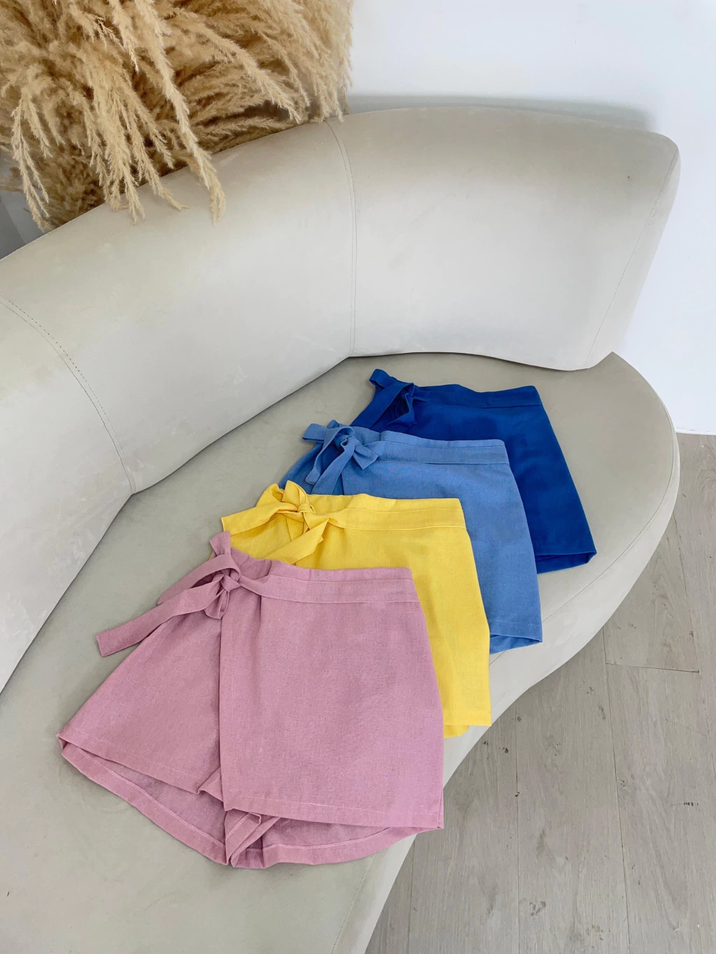 O Short Saia Diane é a peça que une charme e praticidade em um só look. Com modelagem moderna e detalhe de amarração frontal, ele traz o visual delicado da saia com o conforto do short.